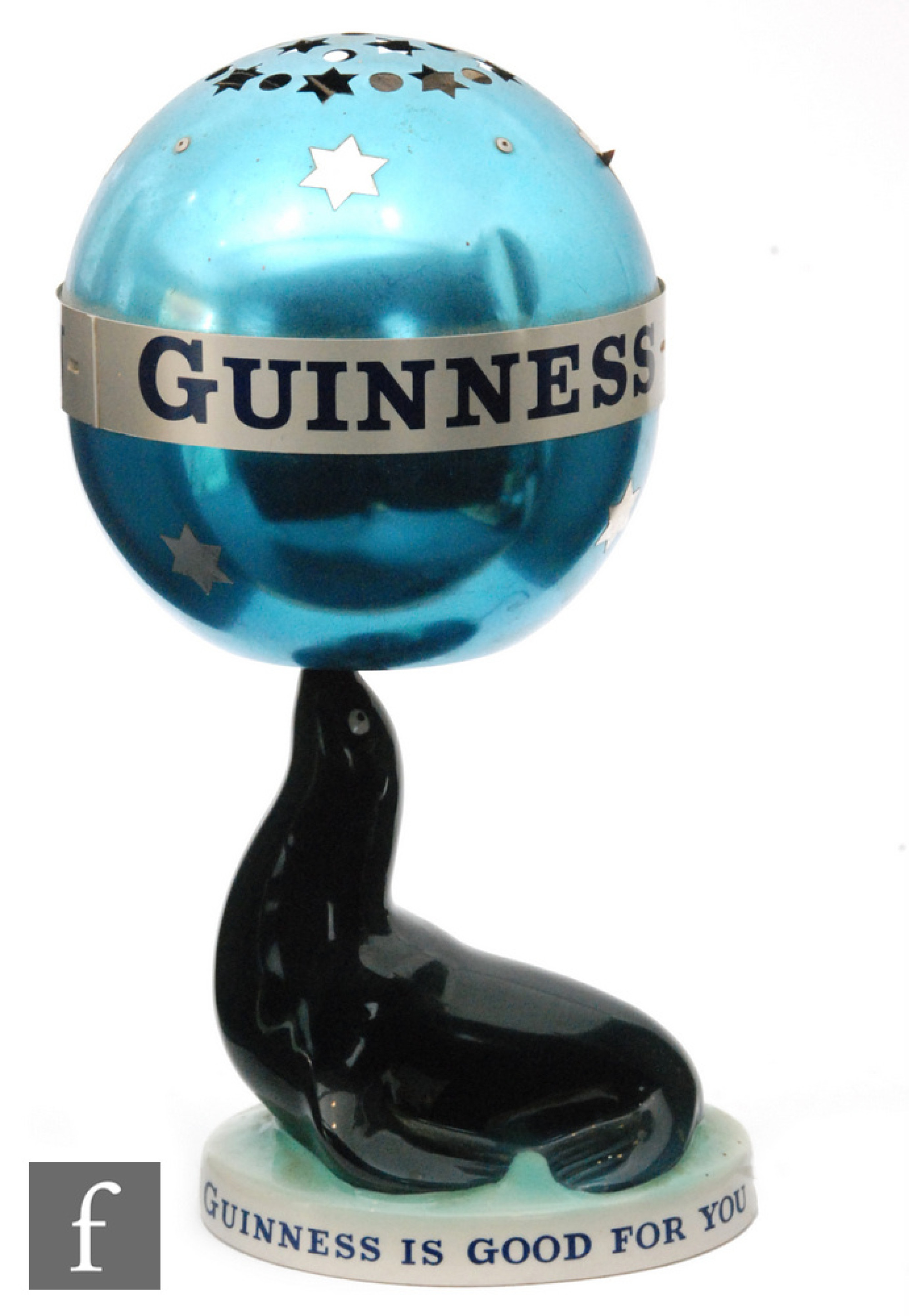 Carlton Ware - A Guinness advertising lamp modelled as a black sea lion holding a globe shade - SOLD £250