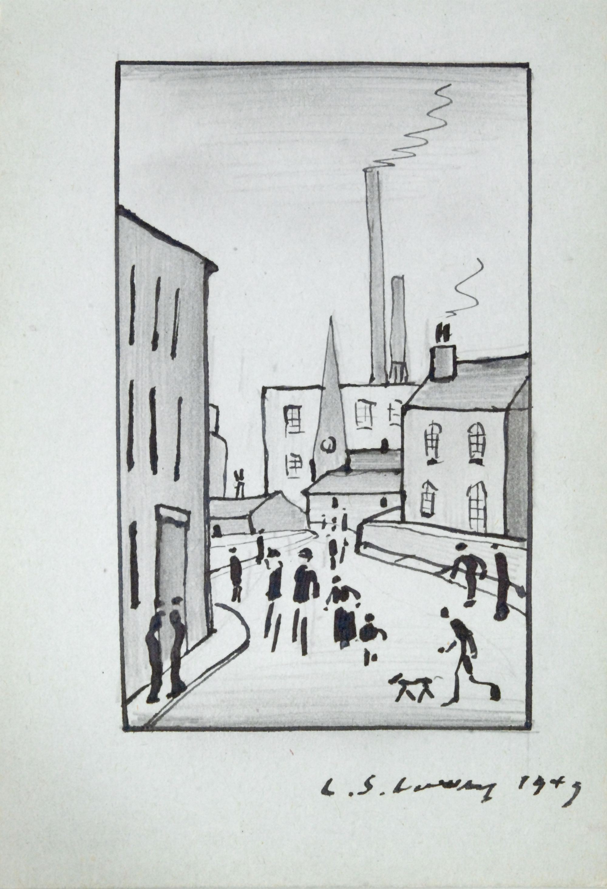 LAWRENCE STEPHEN LOWRY (1877-1976) - Street Scene, pen and pencil drawing, sold £26,500