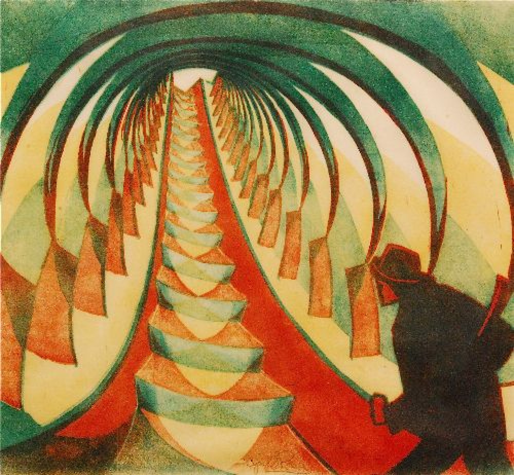 CYRIL POWER -(1872 - 1951). The Escalator - A linocut printed in colours, sold £51,000