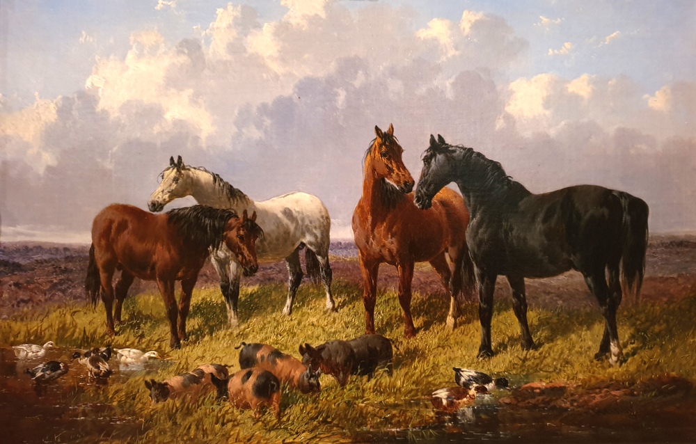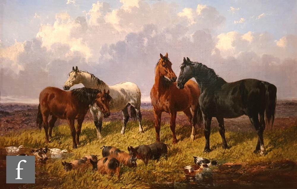 JOHN FREDERICK HERRING (JUNIOR 1815-1907) - Horses, pigs and ducks on a heath, sold £3,400