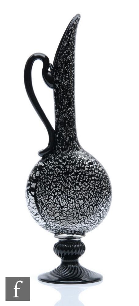 A pint serving jug with mould-blown, trailed and pincered decoration, probably England, possibly Savoy Glasshouse, possibly George Ravenscroft, circa 1675 to 1685, sold £12,500
