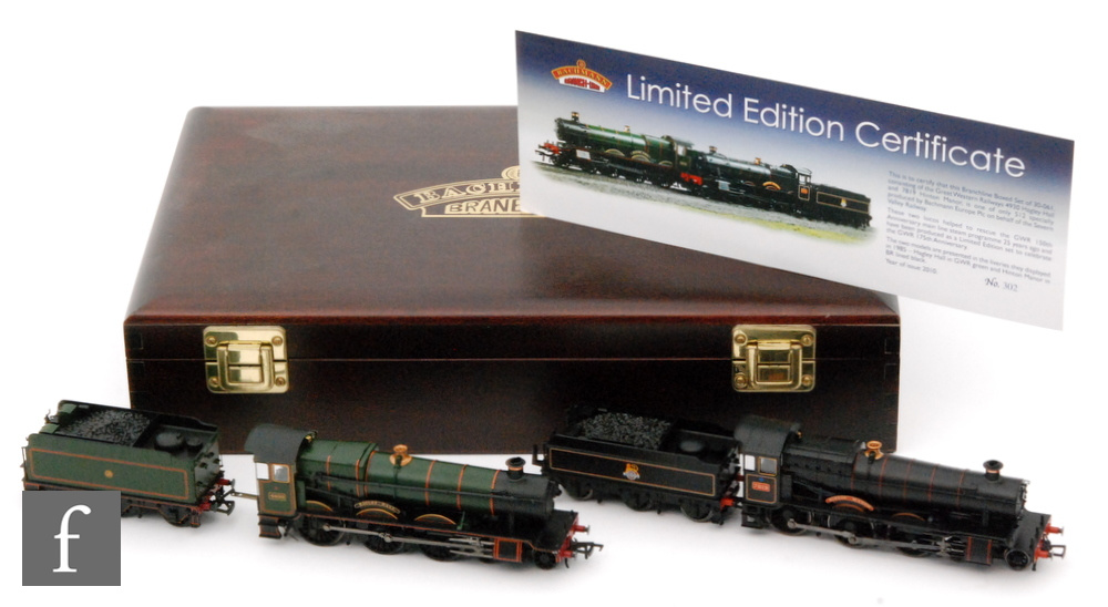 OO gauge Bachmann for Severn Valley Railway GWR 175th Anniversary set containing ‘Hagley Hall’ and ‘Hinton Manor’ locomotives in wooden presentation case