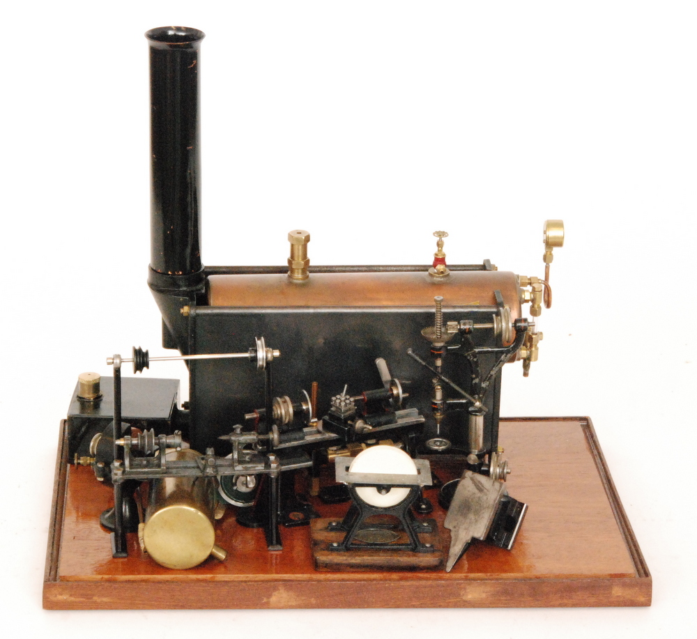 cratch built live steam plant with accessories including a lathe and wheel grinder