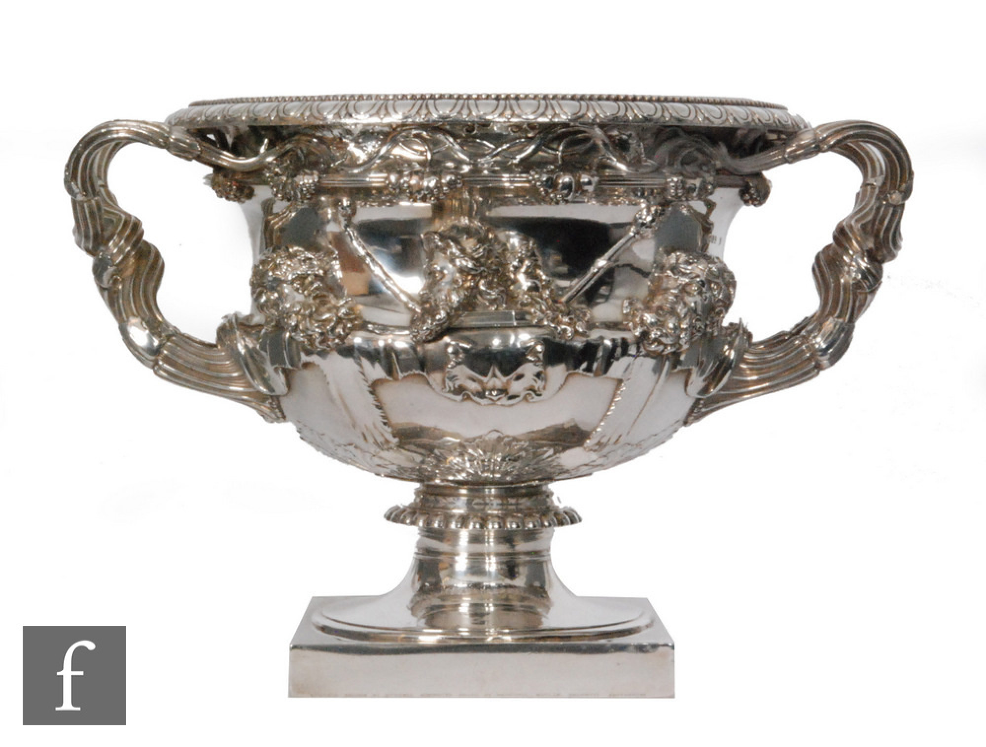 A Georgian hallmarked silver wine cooler and conforming liner formed as The Warwick Vase, sold £28,000