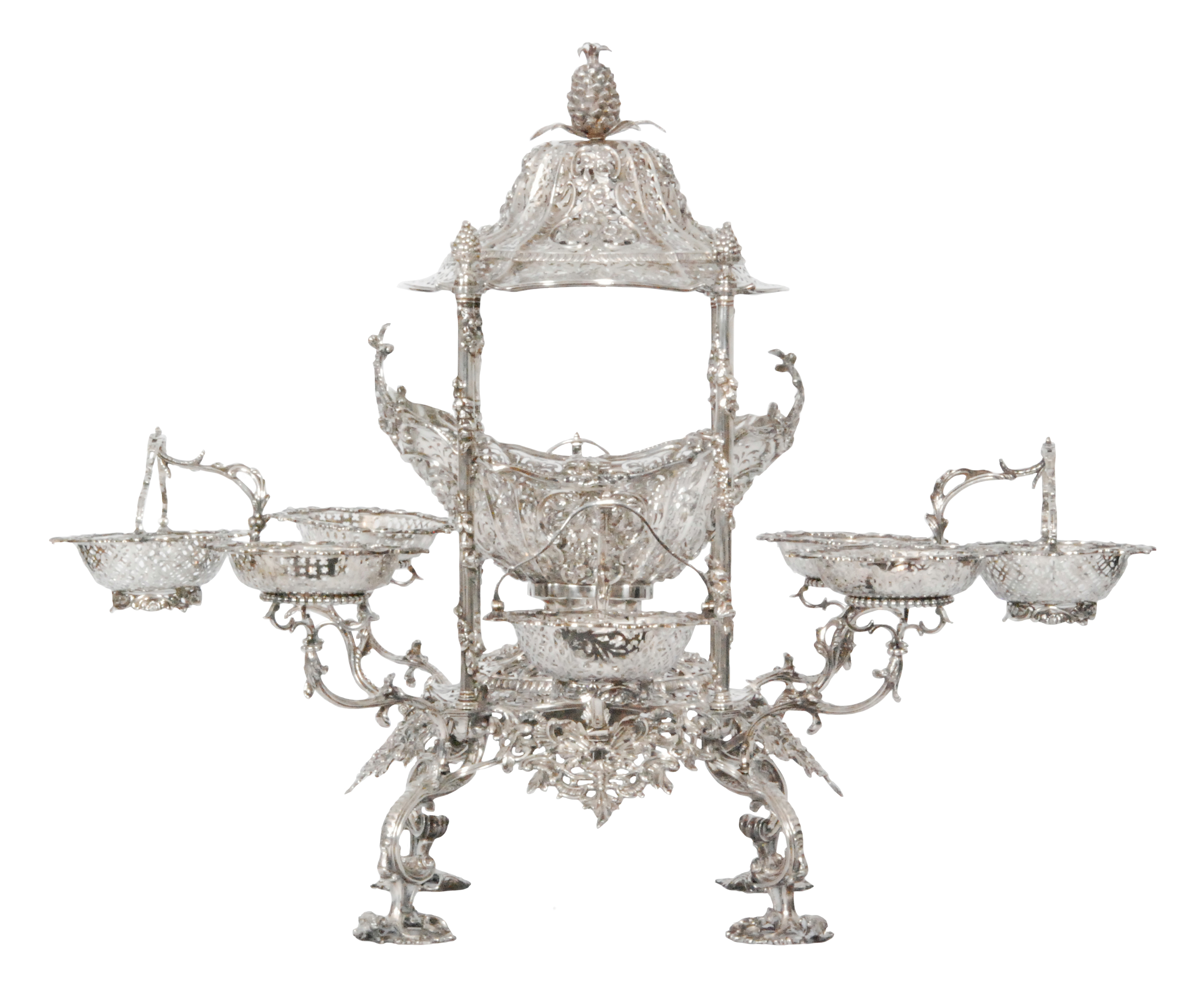 A late 19th Century hallmarked silver pagoda epergne in the Chippendale taste, sold £34,500