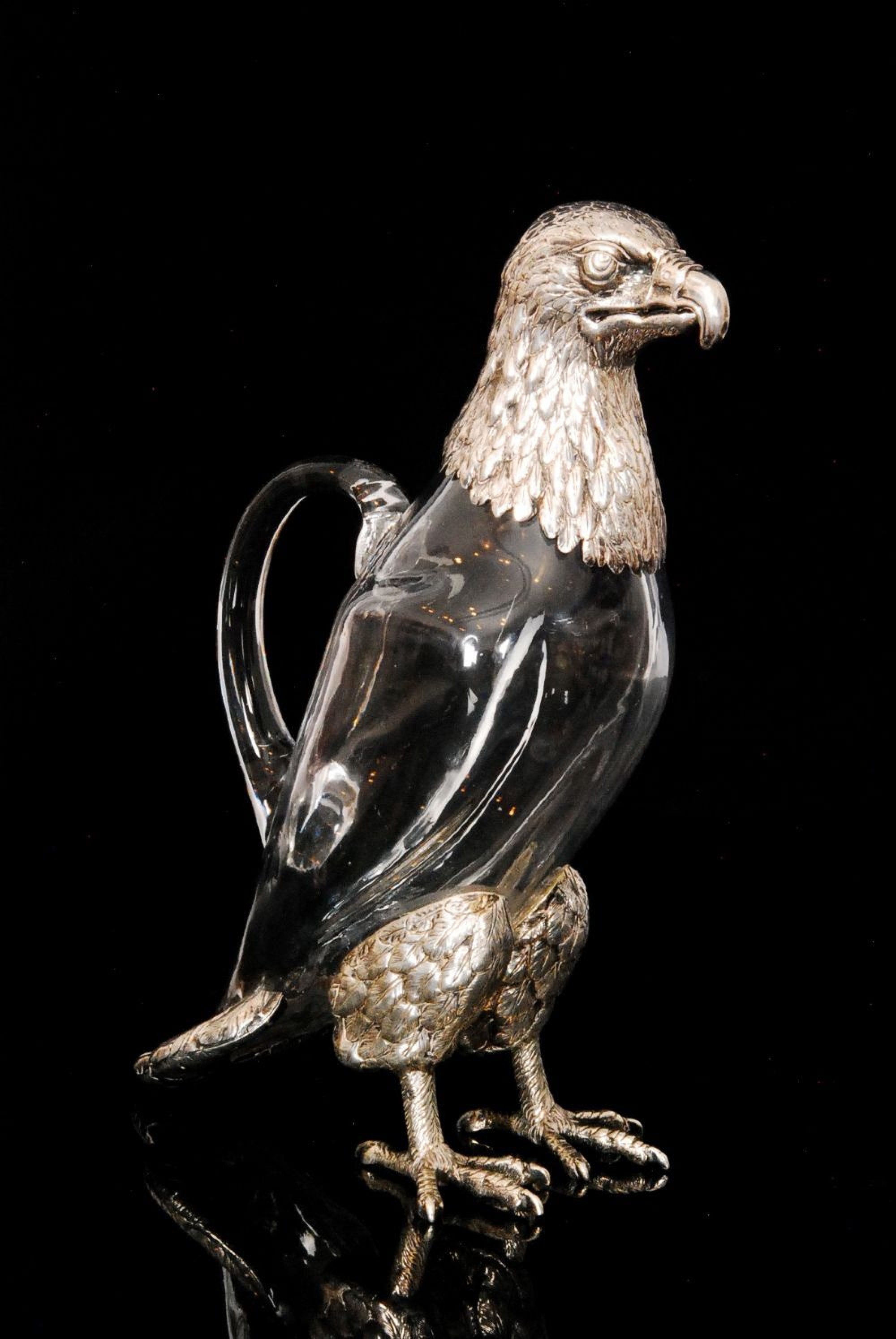 A Victorian hallmarked silver and glass claret jug modelled as a standing eagle, sold £5,800