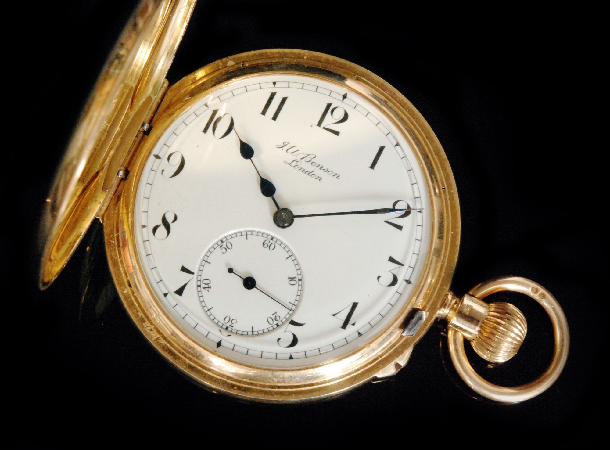 An 18ct hallmarked J W Benson half hunter crown wind pocket , sold for £1,700