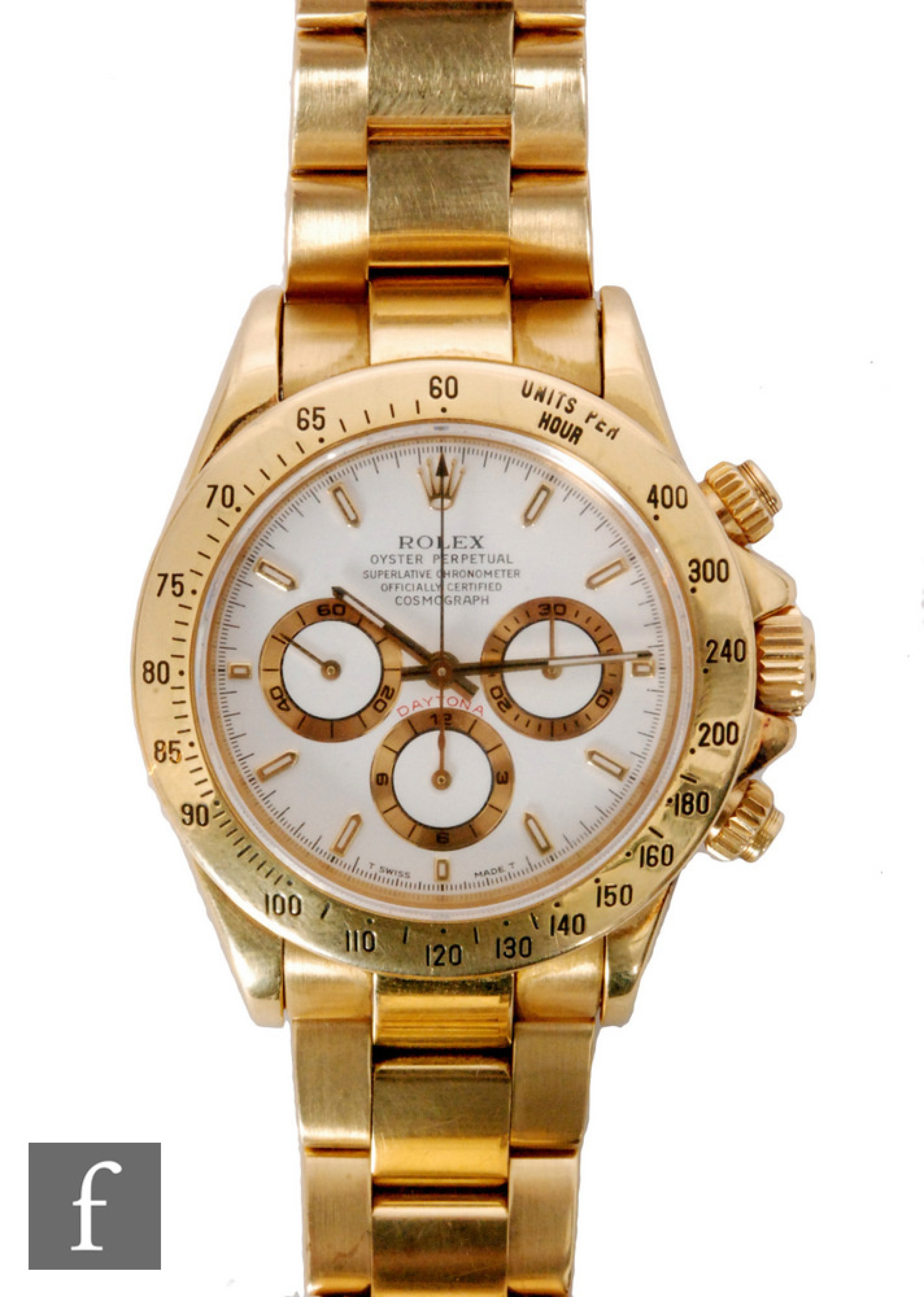 Fieldings watch house record is a gentleman's 18ct Rolex Oyster perpetual cosmograph Daytona wrist watch, sold for £16,000 hammer.