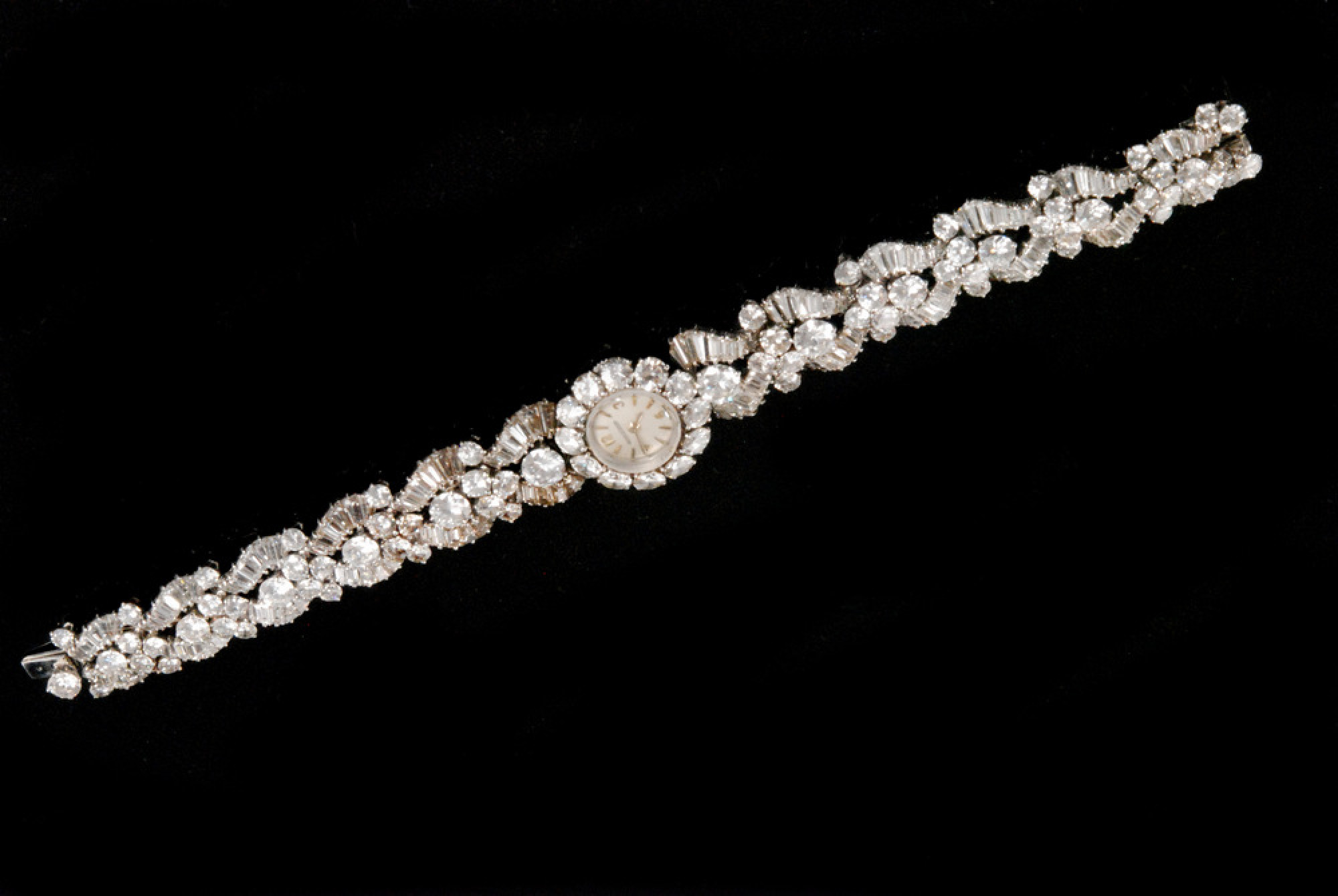A mid 20th Century platinum Jaeger LeCoultre lady's diamond cocktail watch, sold for £13,000