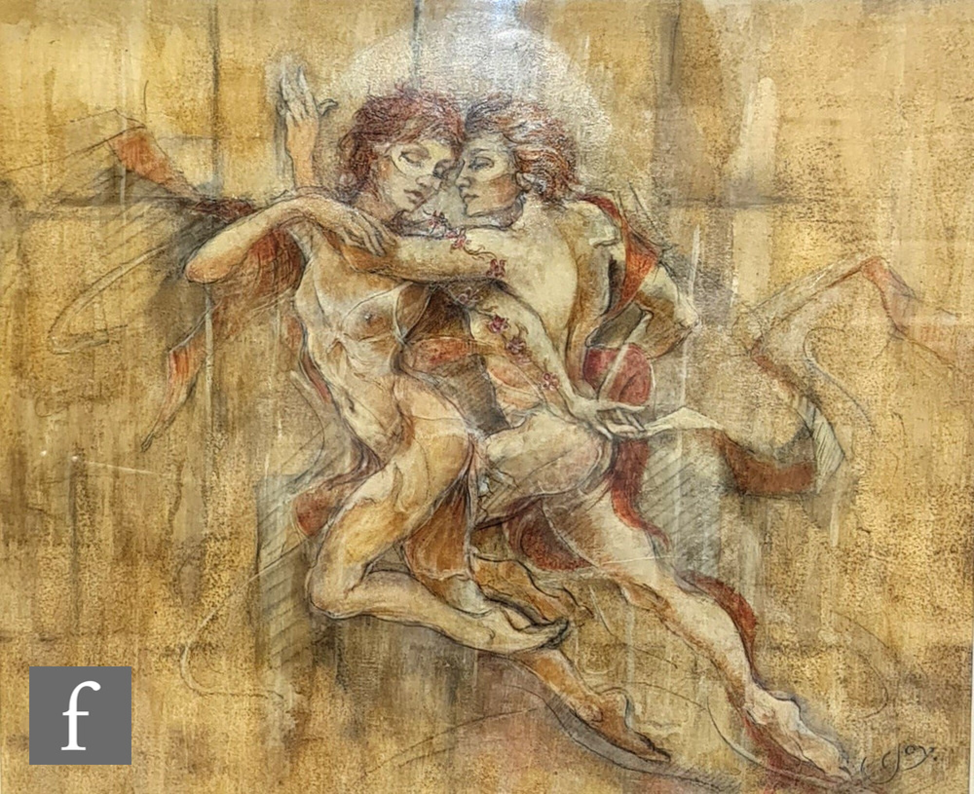 watercolour in excellent condition with no apparent restoration nor repair. Presented in a gilt glazed frame