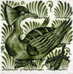 Most highly rated were two 6in (15cm) early Fulham period 'beast' tiles painted in deep blue to a turquoise ground. A stylised peacock in walking pose took £1550 and a tortoise £1600 (estimates £600-800).