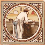Six (of the 12) tiles from the Mintons China Works' Gastronomic series depicting Victorian characters preparing and digesting food were valued at around £100 a tile. Like the best Minton tiles they were also line printed and then hand enamelled, they sold at £1550.