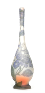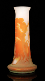Gallé is viewed as one of the most collectable names in glass. Prices vary and while the most sensational and rare examples can realise into six figure sums a small piece can be acquired for as little as £200 or £300. At this price point you can secure a small cameo glass vase, typically decorated with flowers and foliage. These small bud vases are the perfect entry in to a broad collecting field which will grow with you as your knowledge grows.