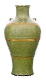 As always the Asian department offered some sale highlights with the interest in pieces attracting bidders from across the world including a number of strong buyers in mainland China. The two pieces which attracted most interest were a Chinese 'Teadust' glazed vase, of meiping form with short lug handles, the shoulder and body with a series of ochre coloured horizontal bands, before a dusted rich green ground, 29cm high, drilled mark to base, possibly a Yongzheng mark (1722-35), secondary paper label to base with written number 30.