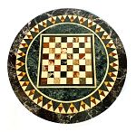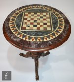 A mid 19th Century Italian specimen marble games table top of circular form by Salvatore Lopes, the coloured chequer board with a geometric band and border, bearing remnants of paper label verso '...marme di Sicilia, .... SALVATORE LOPES..', raised upon a turned rosewood baluster carved pedestal and tripod legs terminating in scroll feet was the top lot of the day selling for £1400 hammer against its £1000 estimate.