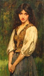 No 3 - WILLIAM A BREAKSPEARE (1856-1914) Mliss, three quarter length portrait of a young woman, oil on canvas, signed, 55cm x 32cm, frame size 63cm x 40cm, see The History of the Royal Birmingham Society of Artists by Joseph Hill & William Midgley Plate 41.