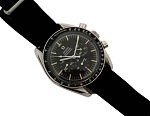 No 2 - A gentleman's stainless steel Omega Speedmaster Professional pre moon wrist watch, movement numbered 26548707, case 145012 67 calibre 321, lyre horns, case diameter 42mm, tachometric bezel encompassing batons and three subsidiary dials to a black circular dial, all to a black canvas strap.