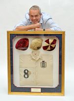 Our July auction which takes place on 22nd and 23rd July, includes a collection of memorabilia relating to this local footballing hero. The lot comprises a Football Association International debut medal awarded to Tom Grosvenor, of Birmingham City, for the England versus Ireland match at Deepdale in Preston on October 4, 1933. During this period players making their debut for England were given an option by the Football Association of receiving a gold commemorative medal instead of their normal match fee. Also included are his three England caps and Tom’s Number 8 England football shirt as well as black and white photgraphs of Tom and his team mates.