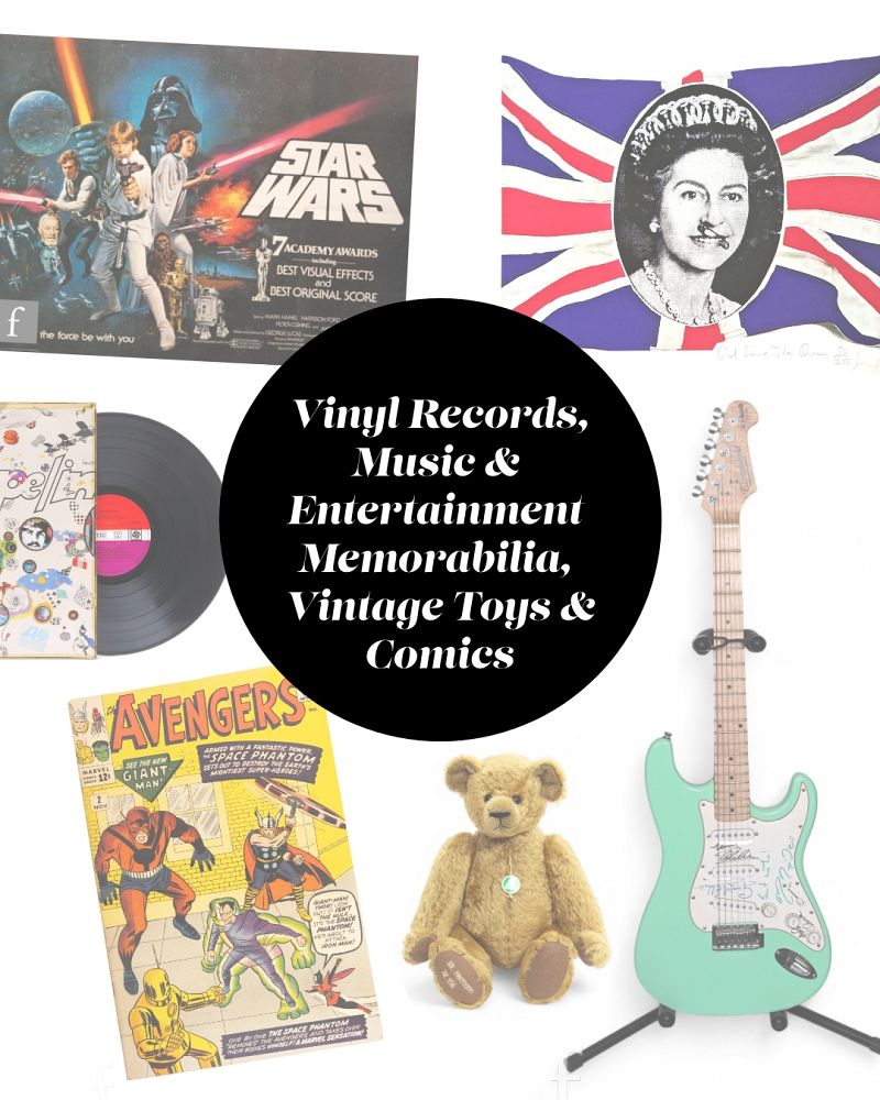 Over 500 lots of vinyl records, music & entertainment memorabilia, vintage toys, model railway, signed guitars, autographs, Star Wars, diecast and much more.