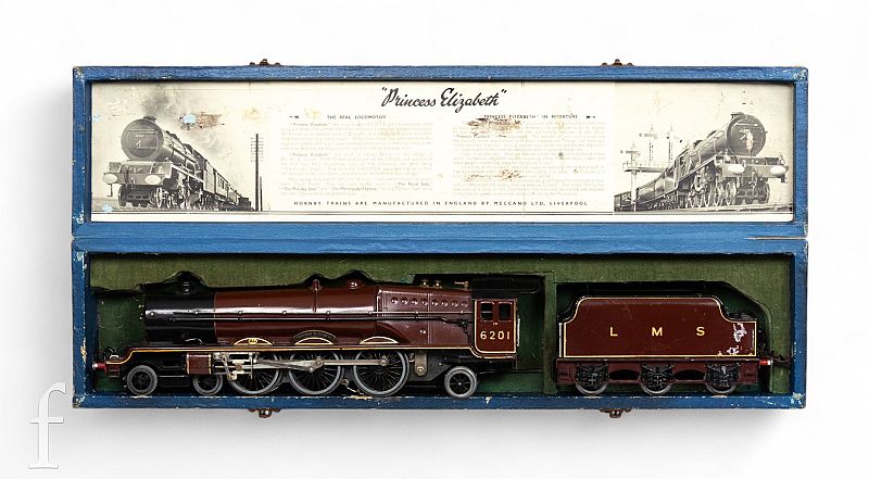 · Lot 264 – Hornby O Gauge LMS Princess Elizabeth Locomotive: The boxed Hornby locomotive and tender achieved £820, appealing to vintage model train collectors.