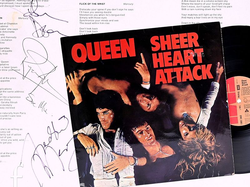 · Lot 178 – Queen Fully Signed Sheer Heart Attack LP: A vinyl copy signed by all four members of Queen reached £2,800, demonstrating the value of autographed music collectibles.