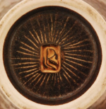 During the Second World War Rie found an outlet for her ceramic skill by designing and making a range of buttons and jewellery for Bimini. The process enabled her to use all her technical expertise producing her trademark brightly coloured and textured glazes. The arrival of Hans Coper, a young German refugee (and budding sculptor), as an assistant to help make the buttons, marked the start of a creative partnership in which Rie always claimed that it was she who was the student.
