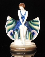 He was also able to use his skill as a bronze sculptor to use the earthenware to his advantage. Carving delicate fingers and enhancing the female form Lorenzl set about producing some stunning sculptures. Captured Bird (pictured) was one of his most popular and was created in many different colourways and sizes. This particular piece is of a dancing girl with a gossamer winged dress which was inspired by a dance performed by Niddy Impekoven and was also captured onto a lamp base with three figures of this elegant lady dancing around the stand. Other dancing girl figurines created by Lorenzl include Butterfly Wings, Spider-Web Dress and The Arabian Dancer. Not only did all his creations represent the elegant and feminine side of a women but each were also very subtly seductive. Adapting his theme of dance Lorenzl also went on to produce the Egyptian Dancer or Odalisque in 1922. This particular piece was again reproduced with models wearing different coloured shawls and is one of the most recognisable figures today.