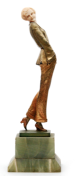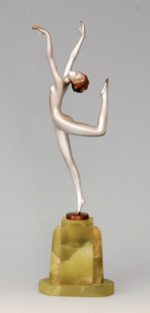 From his designs in bronze and ivory Lorenzl went on to work for the Austrian ceramics company Goldscheider creating a huge catalogue of stunning studies of the female form. Although each piece possess great movement the figures were pared down to simple elegant lines, also many of his figures wore their hair in the boyish bob which was fashionable at the time, making these simplistic and stylish figurines the epitome of Art Deco design.